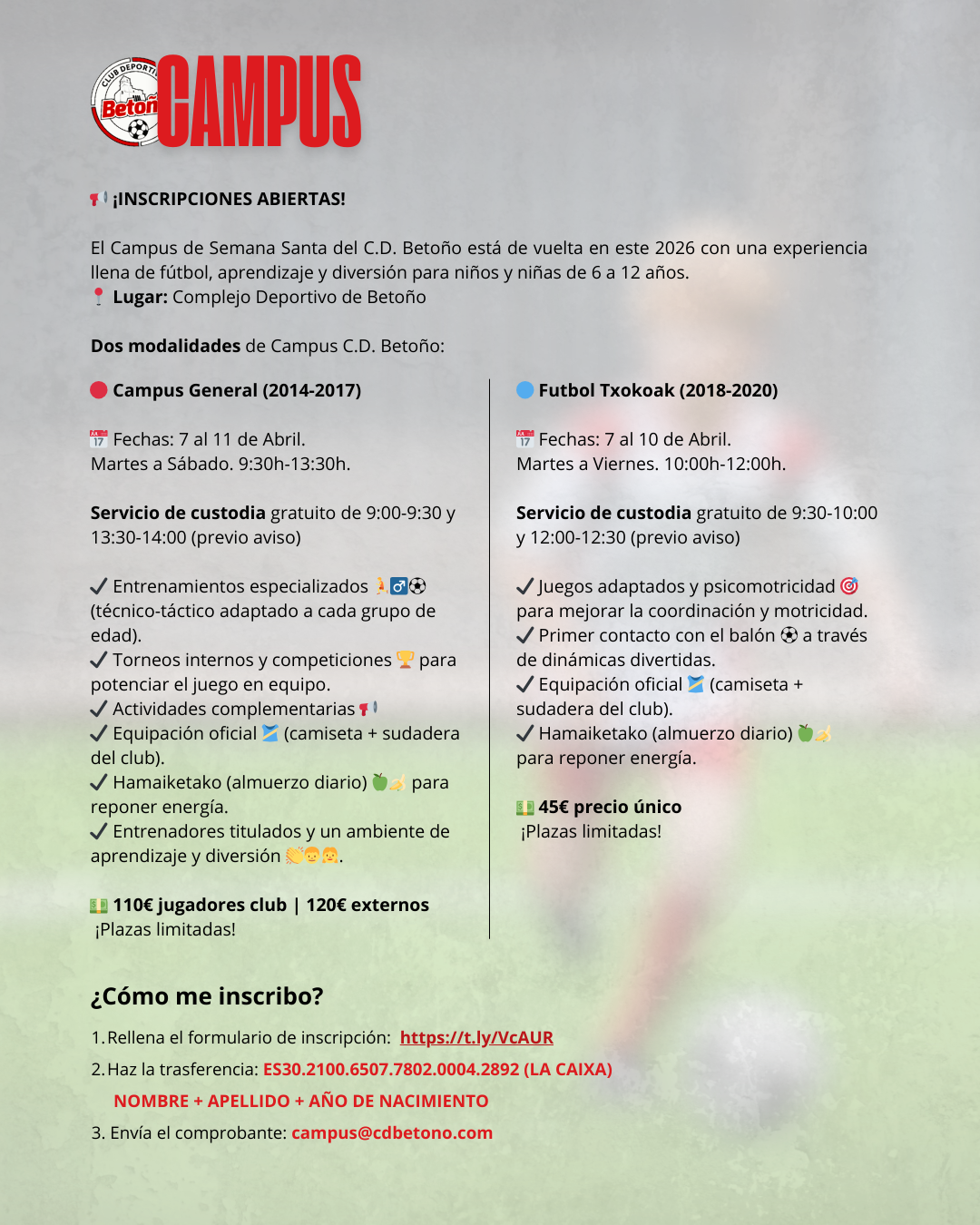 2. Realiza la trasferencia y reserva plaza: